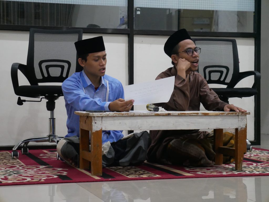 Setiap percakapan yang tersampaikan dengan lancar disambut tepuk tangan dari teman-teman. Bahkan, ada beberapa momen lucu dan spontan, ketika ada yang tersendat mencari kosakata, membuat suasana semakin cair dan menyenangkan. Setelah semua perwakilan maju, tahap berikutnya adalah setoran mufrodat. Setiap mahasantri menyetorkan daftar mufrodat yang telah mereka hafalkan , mufrodat yang disetorkan merupakan mudrodat dari panitia, baik itu isim maupun fi’il yang berkaitan langsung dengan judul diskusi.