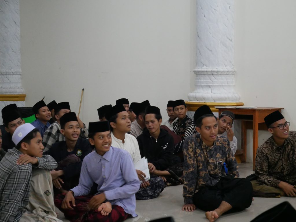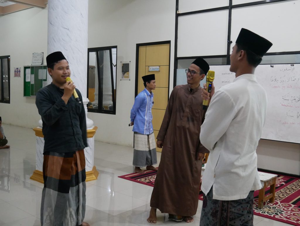 Dengan senjata mufrodat yang mereka kuasai, setiap pasangan dipersilakan berbincang sebisa mungkin, menggali argumen dari berbagai sudut pandang. Ada yang lancar berbicara tanpa ragu, ada yang sesekali terdiam mencari kata yang tepat, dan ada pula yang saling bertanya tentang mufrodat yang belum mereka pahami Tak hanya berbicara bebas, para dosen juga berkeliling, siap membantu kapan saja jika ada mahasantri yang kesulitan menemukan kosakata yang sesuai. Diskusi kecil ini menciptakan suasana yang hidup, penuh interaksi, dan jauh lebih efektif dibanding format sebelumnya.