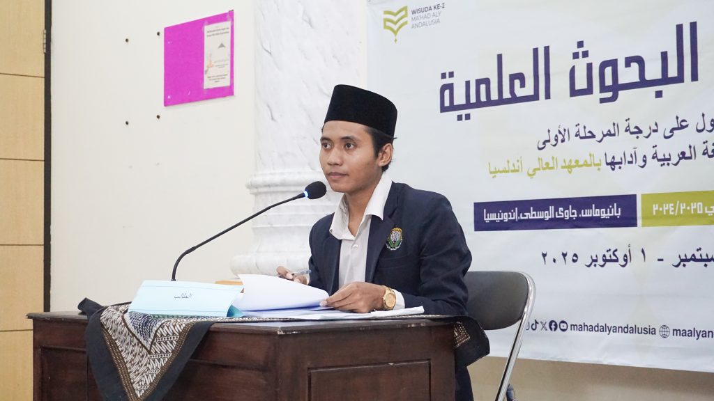 Banyumas, Jawa Tengah (30 September 2025) – Ma’had Aly Andalusia kembali mencatatkan sejarah melalui terselenggaranya sidang munaqasyah angkatan kedua. Momentum ini mendapat apresiasi khusus dari salah satu penguji eksternal, Dr. KH. Muhammad Agus Salim, Lc., M.A., yang menilai kualitas akademik mahasantri menunjukkan perkembangan signifikan dibanding tahun pertama.