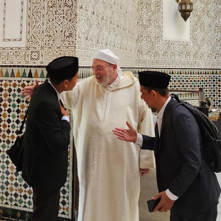 Dalam kunjungan tersebut, para mudir diterima langsung oleh Prof. Dr. Idris Al Fasi Al Fihri, Rektor Universitas Al Qarawiyiin, serta jajaran Direksi Institut Darul Hadist Al Hasaniyyah, termasuk Prof. Abdul Hamid Asyaq. Syaikh Idris Al Fasi Al Fihri menyambut hangat kedatangan para delegasi Indonesia dengan ijazah hadits yang menjadi simbol persaudaraan dan keilmuan. Salah satu hadits yang beliau sampaikan berbunyi, “Arhamu man fil ardhi yarhamkum man fis samaa’” — Sayangilah makhluk di bumi, maka kalian akan disayangi oleh (Allah dan malaikat-Nya) di langit.