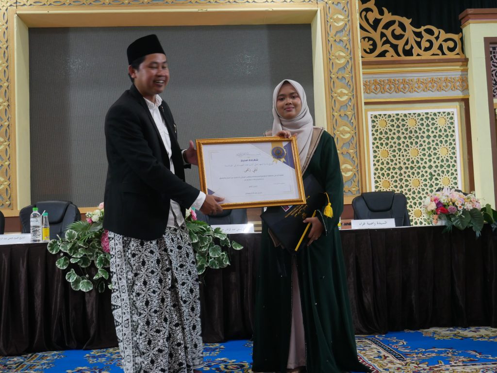 Prosesi yang dipimpin langsung oleh KH. Zuhrul Anam Hisyam ini menjadi momen istimewa bagi para lulusan, yang kini resmi menyandang gelar Sarjana Agama (S1) dalam Takhasus Bahasa Arab & Sastra. Setiap wisudawan menerima ijazah, kitab Syudzur Adz-Dzahab, dan kalung samir sebagai simbol kelulusan. Agus Haizusyarof, yang membacakan Surat Keputusan kelulusan, menjelaskan bahwa gelar ini adalah bentuk pengakuan atas ketekunan para lulusan dalam mempelajari ilmu agama dan Bahasa Arab.
